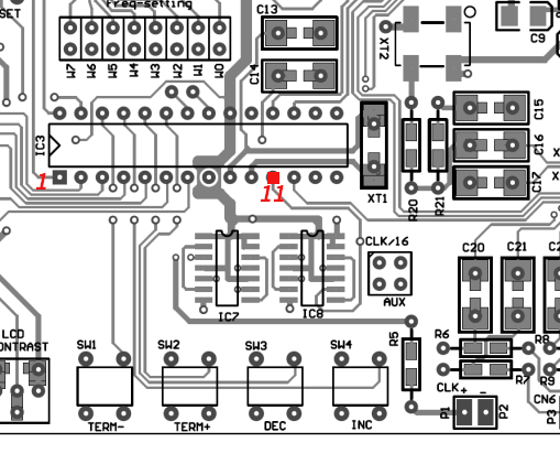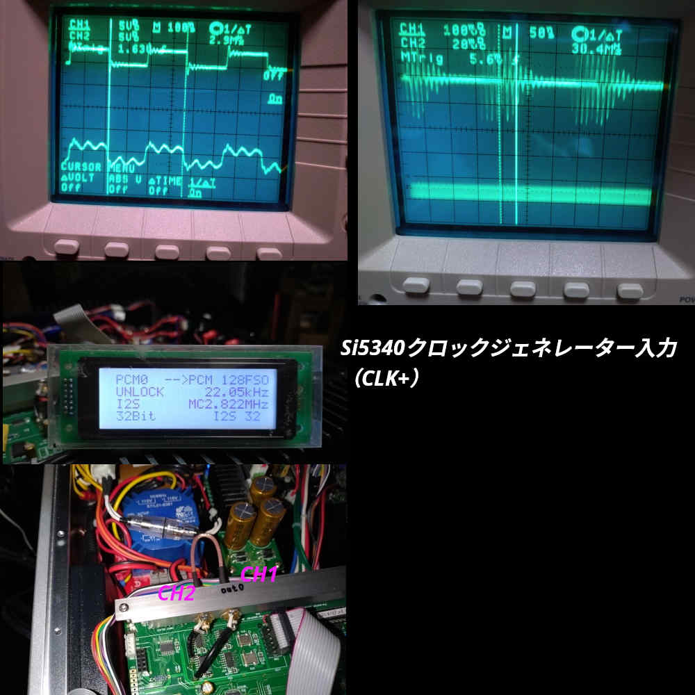 AK4137の33番ピンから出力されるクロック信号を次段のロジックICに入る前に